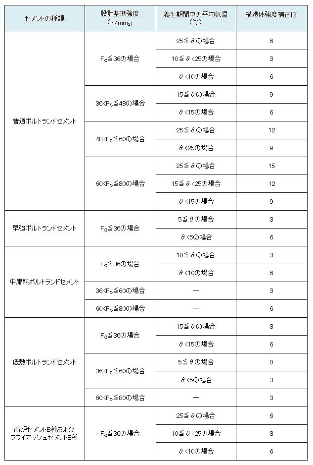 設計基準強度に補正値を加えた数値以上であることを求める内容だ。